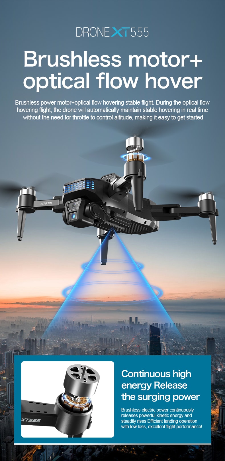 GPSドローン RCスクリーン クールライト クアッドコプター XT555