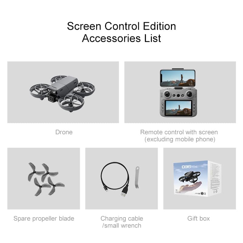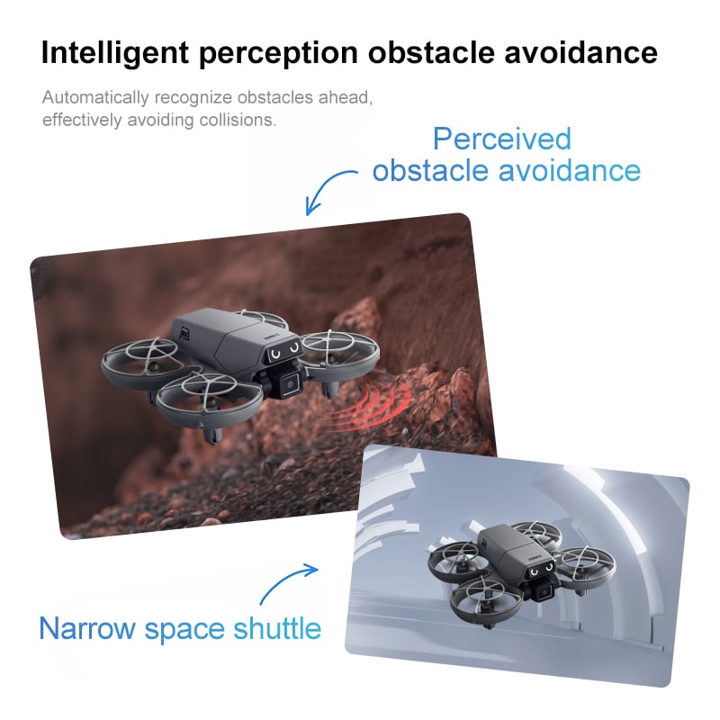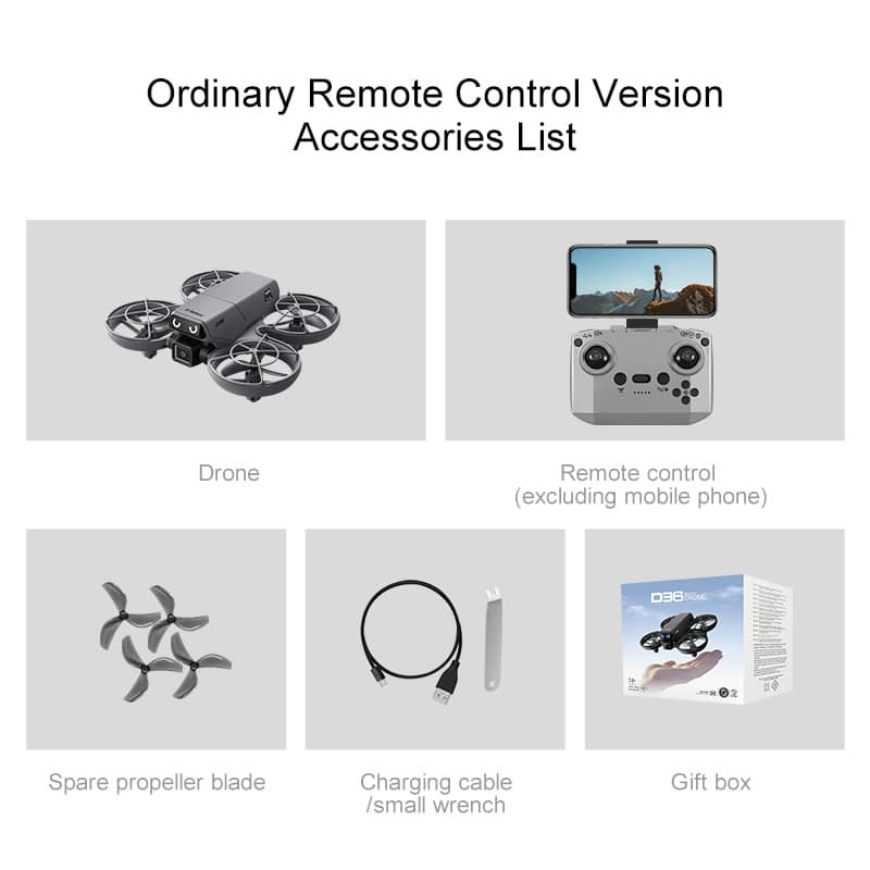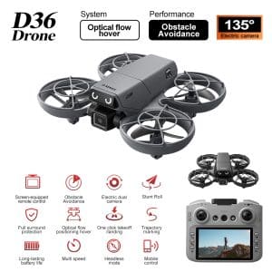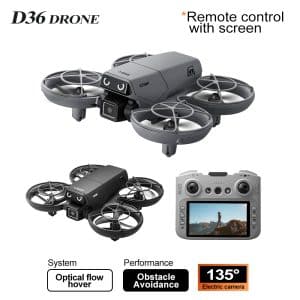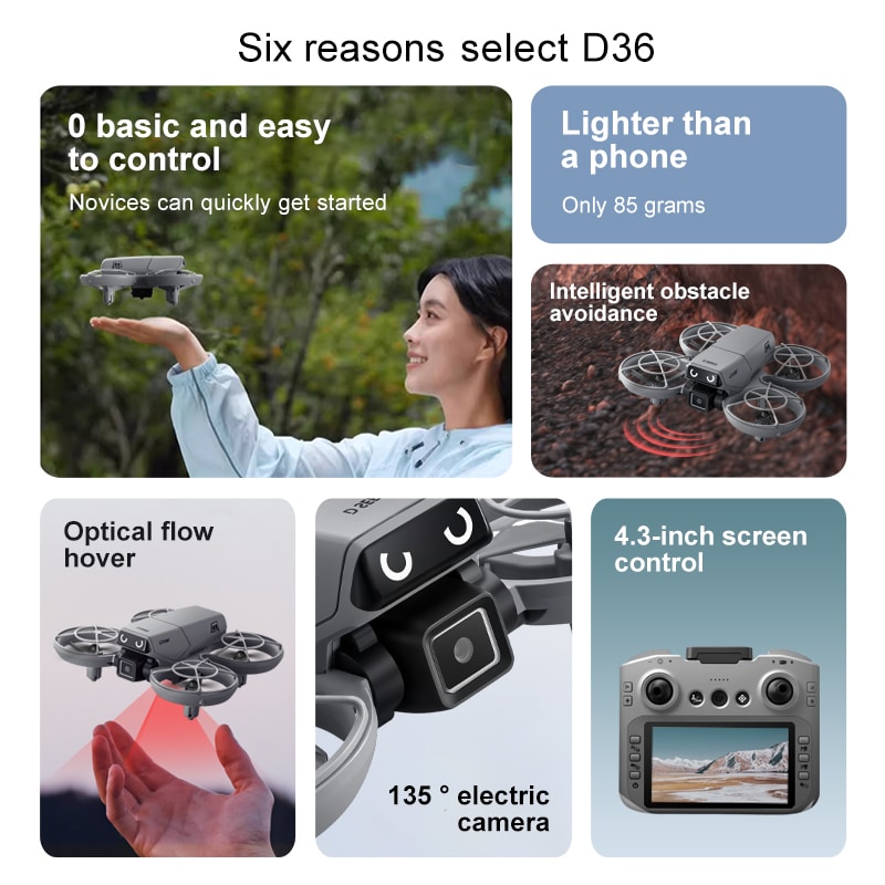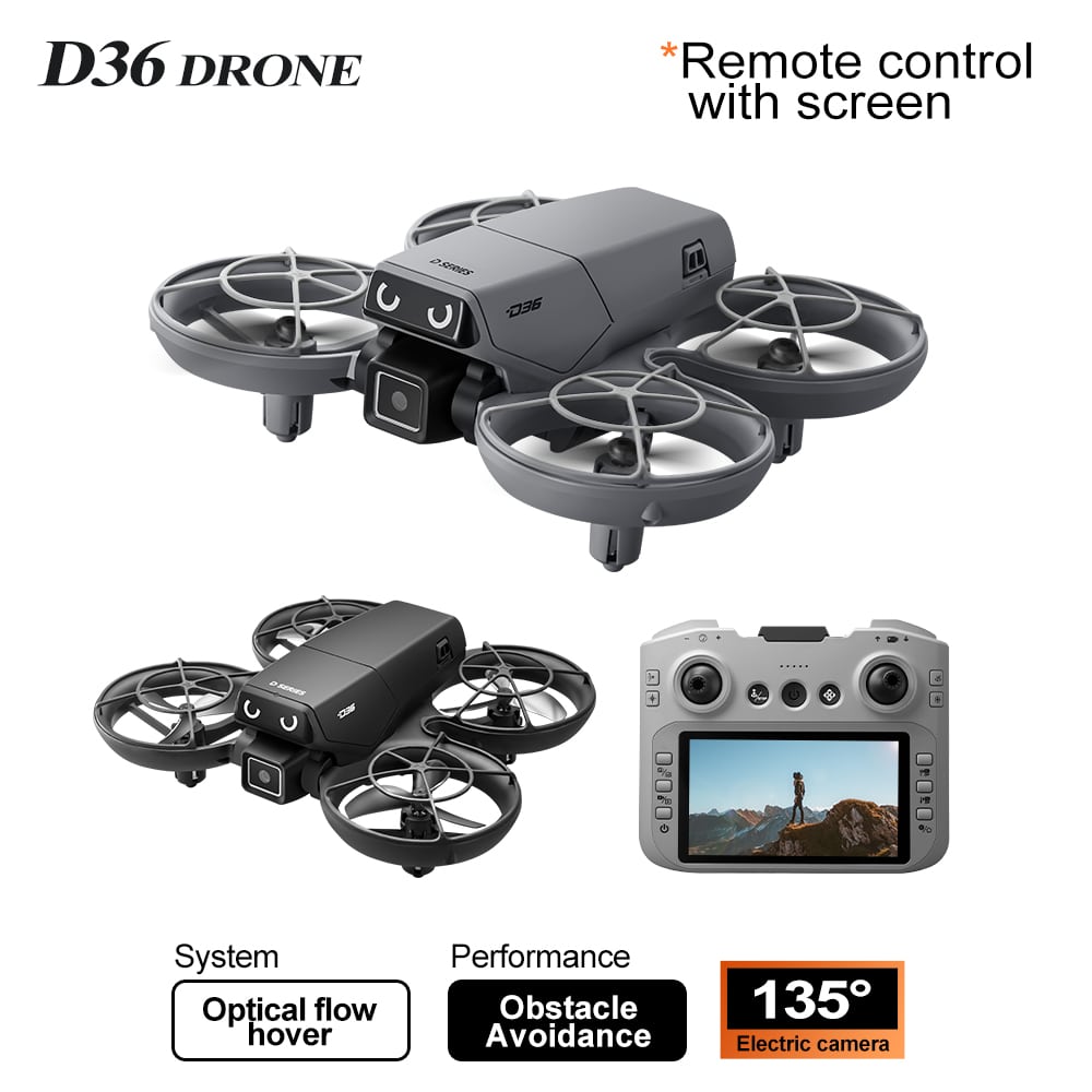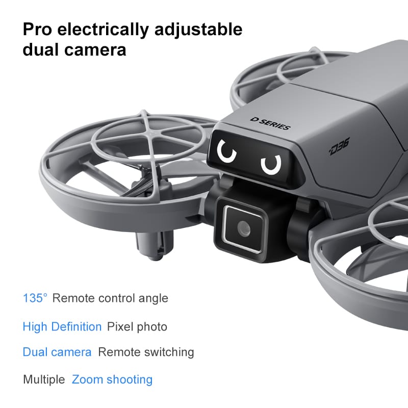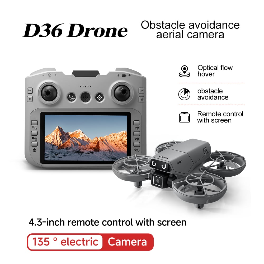The D36 mini drone is the perfect gift, featuring a full protective enclosure and safe propeller design. Its compact size makes it highly portable. The drone includes altitude hold mode, four-way obstacle avoidance, and a 135° electric adjustable camera for upward-angle shots. Optical flow positioning ensures stable flight. In headless mode, no direction adjustment is needed. Use the one-key return function for easy retrieval. Draw a flight path on the APP for autonomous flying. With 2.4GHz anti-interference technology and a six-axis gyroscope, the D36 delivers smooth and stable flight control.
