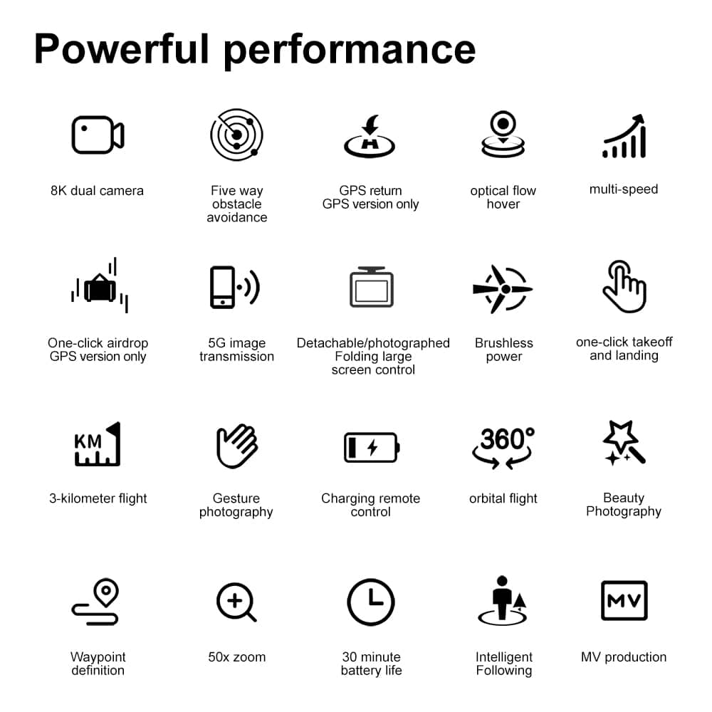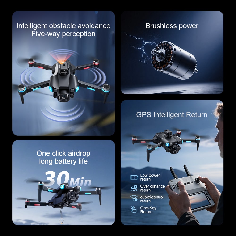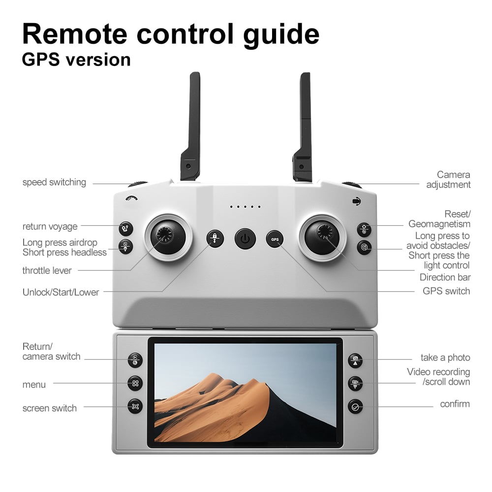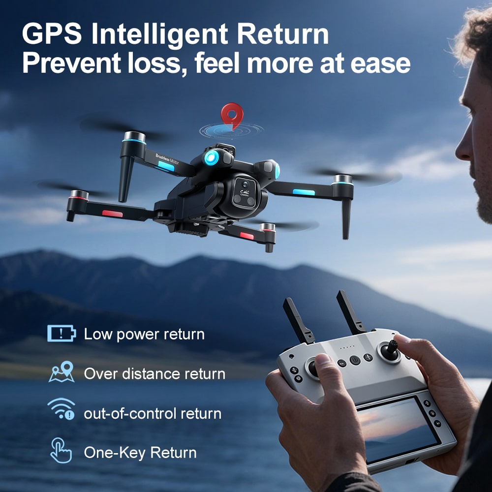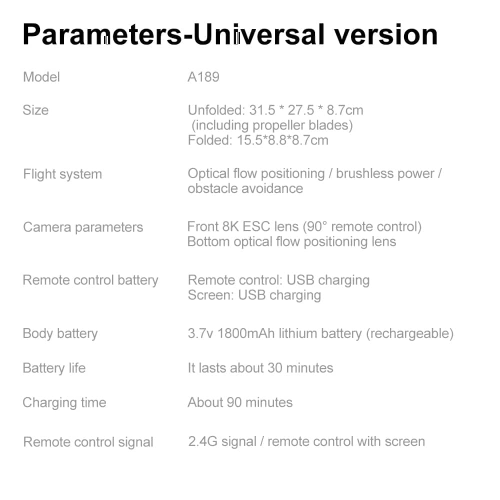 Drone A189 is a GPS drone featuring 5G transmission for smooth, lag-free video streaming. As a smart GPS drone, it offers real-time positioning that tracks both drone and phone locations with live flight data monitoring. The 5.9-inch remote controller screen on this GPS drone is foldable and detachable – it can also be used as a standalone camera. A189 includes a modular obstacle avoidance sensor head (optional installation). Low battery alert and multiple return-to-home functions (low battery auto return, signal loss auto return, one-key return) ensure flight safety. GPS modes include Follow Me, Orbit, and custom waypoint drawing.