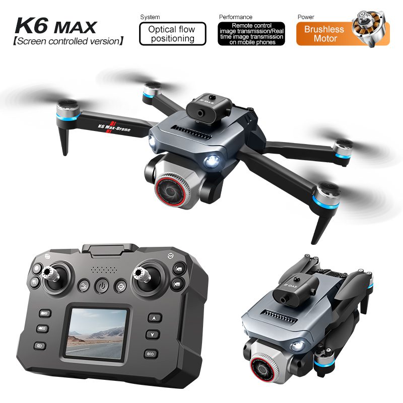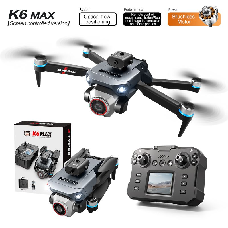โดรน K6MAX มาพร้อมรีโมทคอนโทรลแบบบูรณาการที่มีหน้าจอในตัว ช่วยขจัดความจำเป็นในการใช้สมาร์ทโฟนและมอบประสบการณ์การบินที่เรียบง่ายและพร้อมใช้งานทันที โดรนนี้ใช้ระบบลอยตัวและระบุตำแหน่งด้วยระบบโฟลว์ออปติคัลขั้นสูงเพื่อการบินในร่มที่แม่นยำและการรักษาความสูงที่เสถียร เสริมด้วยระบบหลีกเลี่ยงสิ่งกีดขวางสี่ทิศทาง ช่วยให้มั่นใจในการใช้งานที่ปลอดภัยในสภาพแวดล้อมที่หลากหลาย โหมดการบินอัจฉริยะรวมถึงการบินตามเส้นทางที่ตั้งโปรแกรมได้และการถ่ายภาพด้วยท่าทาง ควบคุมตอบสนองด้วยระบบ 2.4G ที่ช่วยให้การเคลื่อนไหวราบรื่น การหมุนตีลังกา และการปรับความเร็วหลายระดับ ในขณะที่การขึ้นและลงจอดด้วยปุ่มเดียวที่สะดวกทำให้ใช้งานได้ง่ายสำหรับผู้ใช้ทุกระดับทักษะ.
